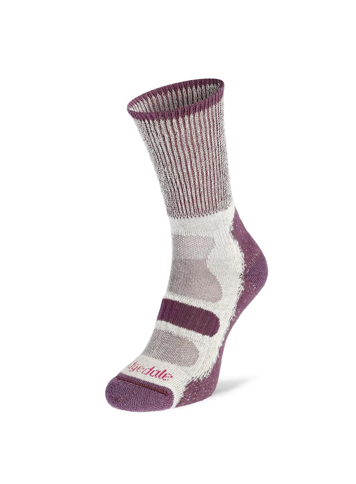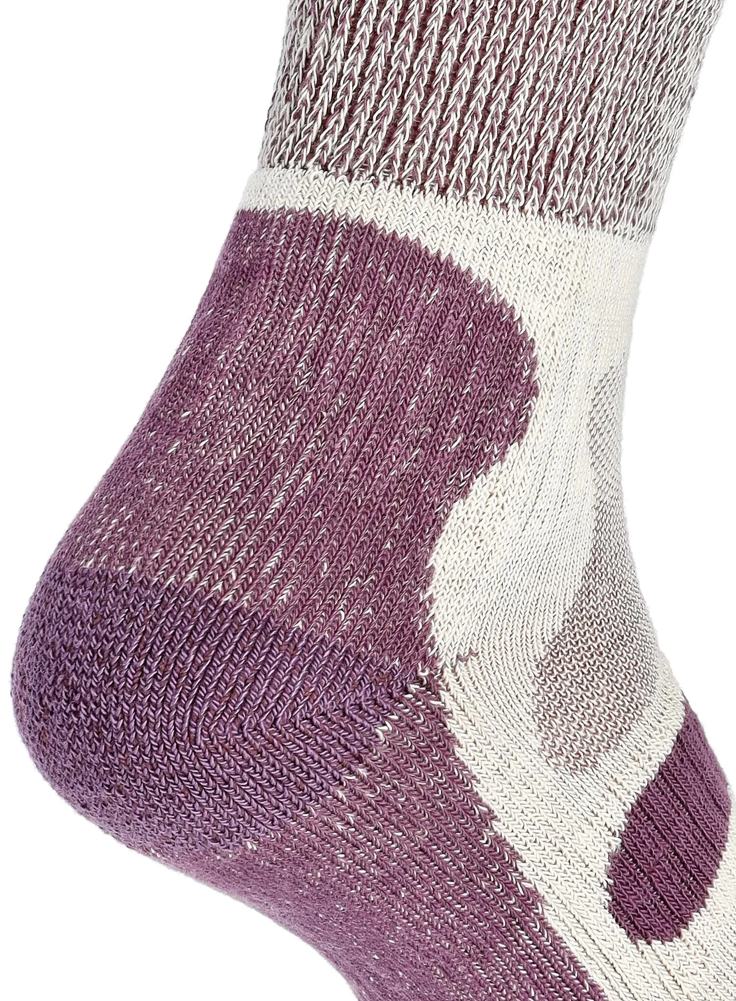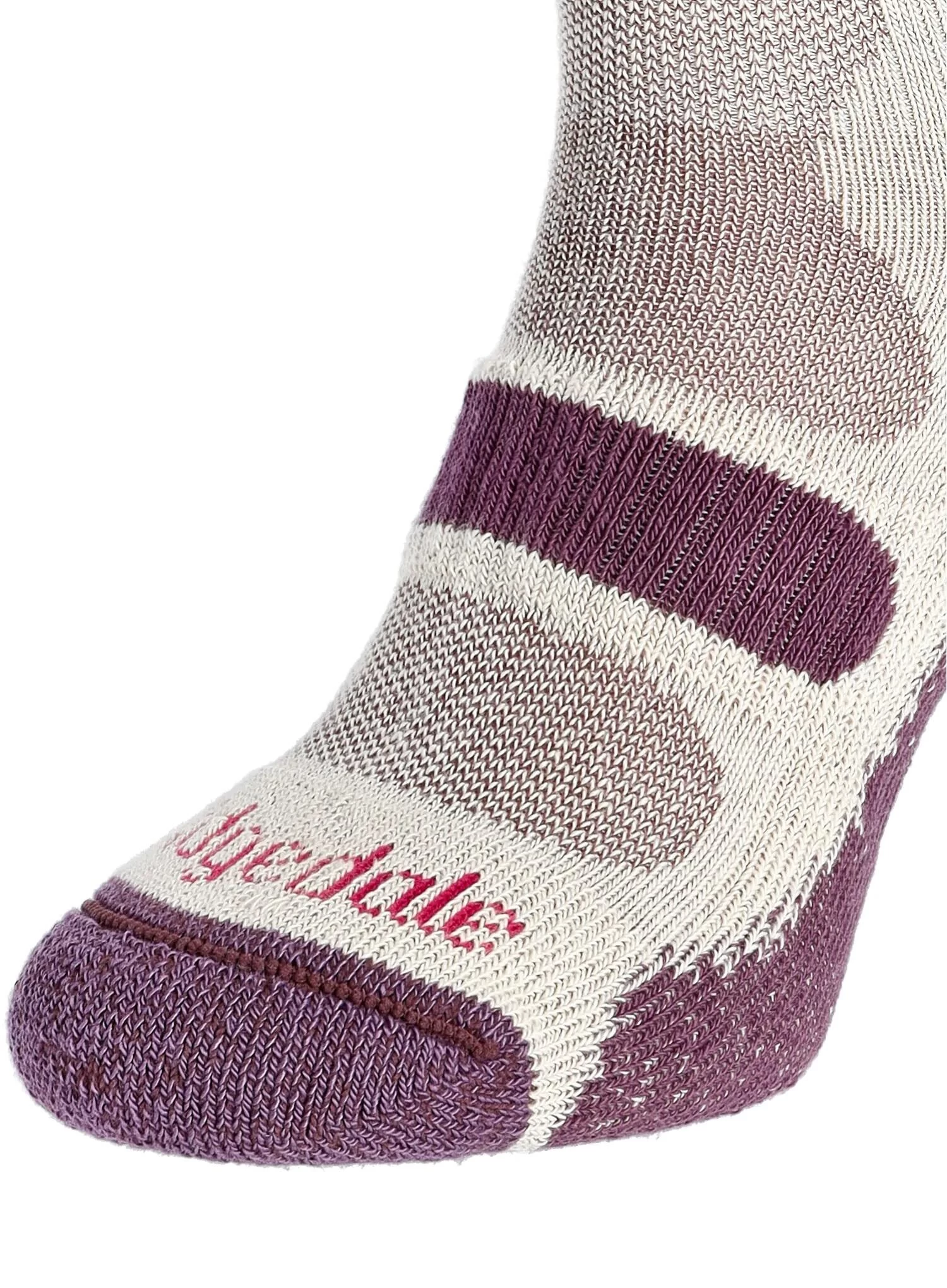 A boot length, women’s specific fit, lightweight, soft sock designed for warm weather trekking. The Hike Lightweight Coolmax® Comfort maximises the natural benefits of cotton with a comfortable unrestrictive knit. Featuring Fusion Tech Coolmax® Comfort Technology for softness and superb wicking performance to keep feet dry and comfortable whilst walking and trekking in warmer climates. The super stretch ribbed cuff provides a close supportive fit on your foot with a looser unrestrictive fit around your calf, allowing the cuff to be worn up or down. The zonal padding system provides extra support whilst the open mesh structure promotes increased moisture transportation. The Flat Toe Seam minimises bulk that could cause irritation in the toe box and the sock is kept securely in place with an engineered Women’s Specific Fit, an Elasticated Arch and 3D-shaped heel cup. This is the ideal choice for those looking for a lighter non wool sock for day hikes in warmer climates.