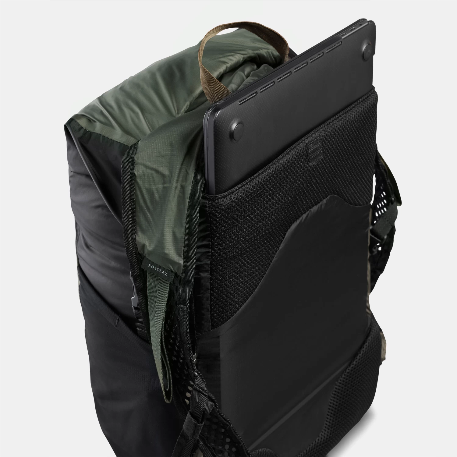 Our designers developed this compact, ultra lightweight and waterproof bag for your travels and in everyday life.Once unfolded, this back-up bag can hold up to 25 L so you can store your belongings and a laptop (14 inches). Folded back up in its pouch, its slides easily into a suitcase.