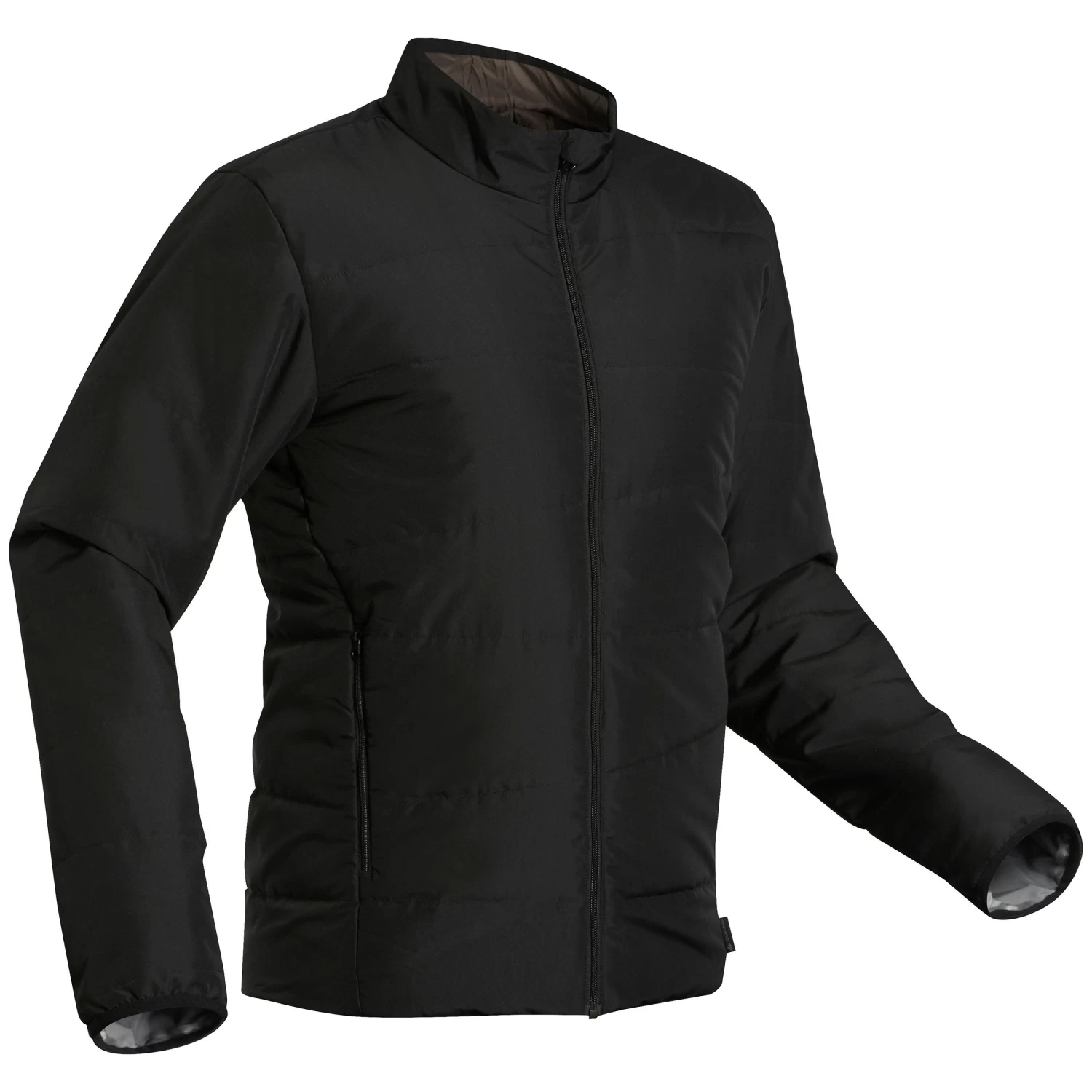 This padded jacket, when worn as a 3rd layer, has a temperature rating of 0°C that was certified during a standardised test in a thermal chamber. The model is wearing a synthetic long-sleeved T-shirt and a light fleece underneath. It works with a simulated 5 km/h wind. In our heat comparison tool, this is equivalent to 1 star.
