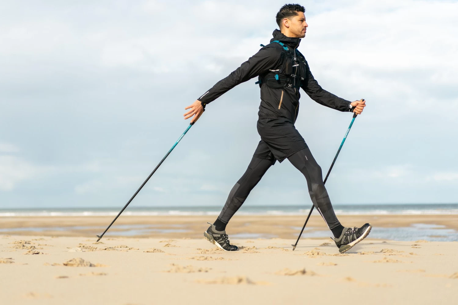 What are the differences between Nordic walking and hiking?Nordic walking is performed with special walking poles on flat or gently sloped ground.These single-piece walking poles help propel your action and work your upper body more intensely.