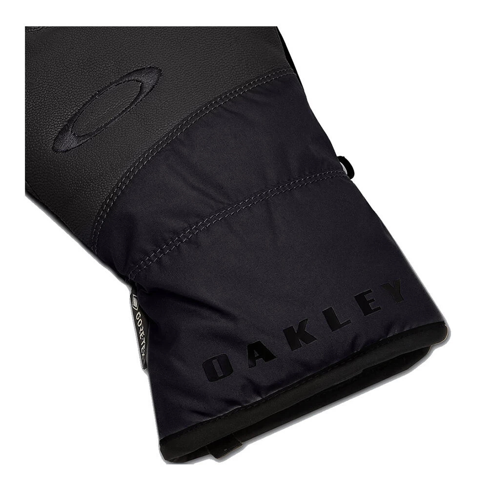 High performance GORE-TEX waterproof technology and supple leather are just a couple of the standout features in this Ellipse Goatskin Glove. Elastic cuffs with loop-pull Velcro closures provide retention, and touchscreen compatibility adds additional versatility. Side hooks offer a secure fastening option when not in use and iconic Oakley branding is displayed on the top.