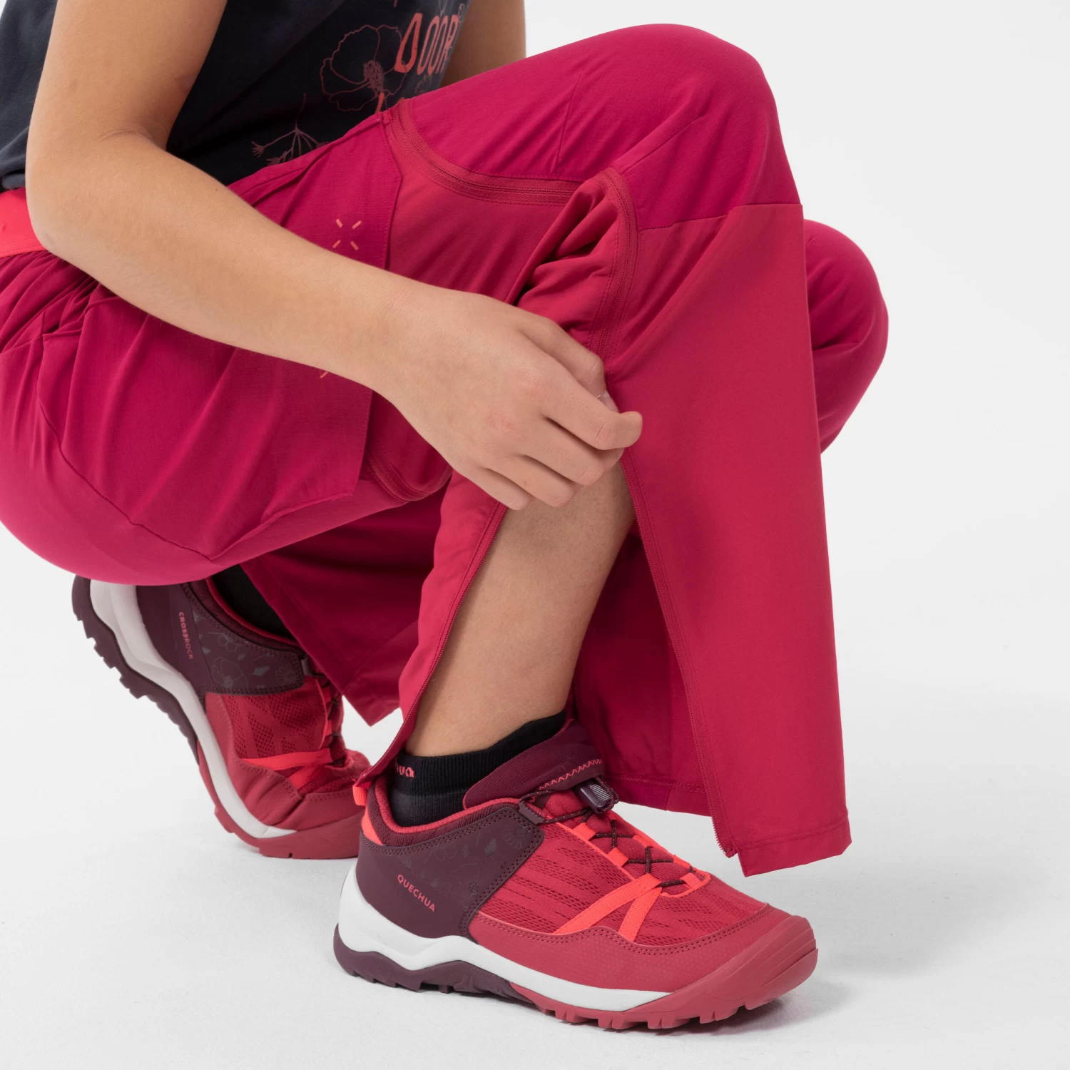 Our designers, parents of young hikers, have developed these MH500 adjustable trousers for hiking in all weathers.The trousers are breathable, lightweight and can be transformed into shorts to adapt to the weather and the amount of movement. Your child will love changing themselves without having to take off their shoes!