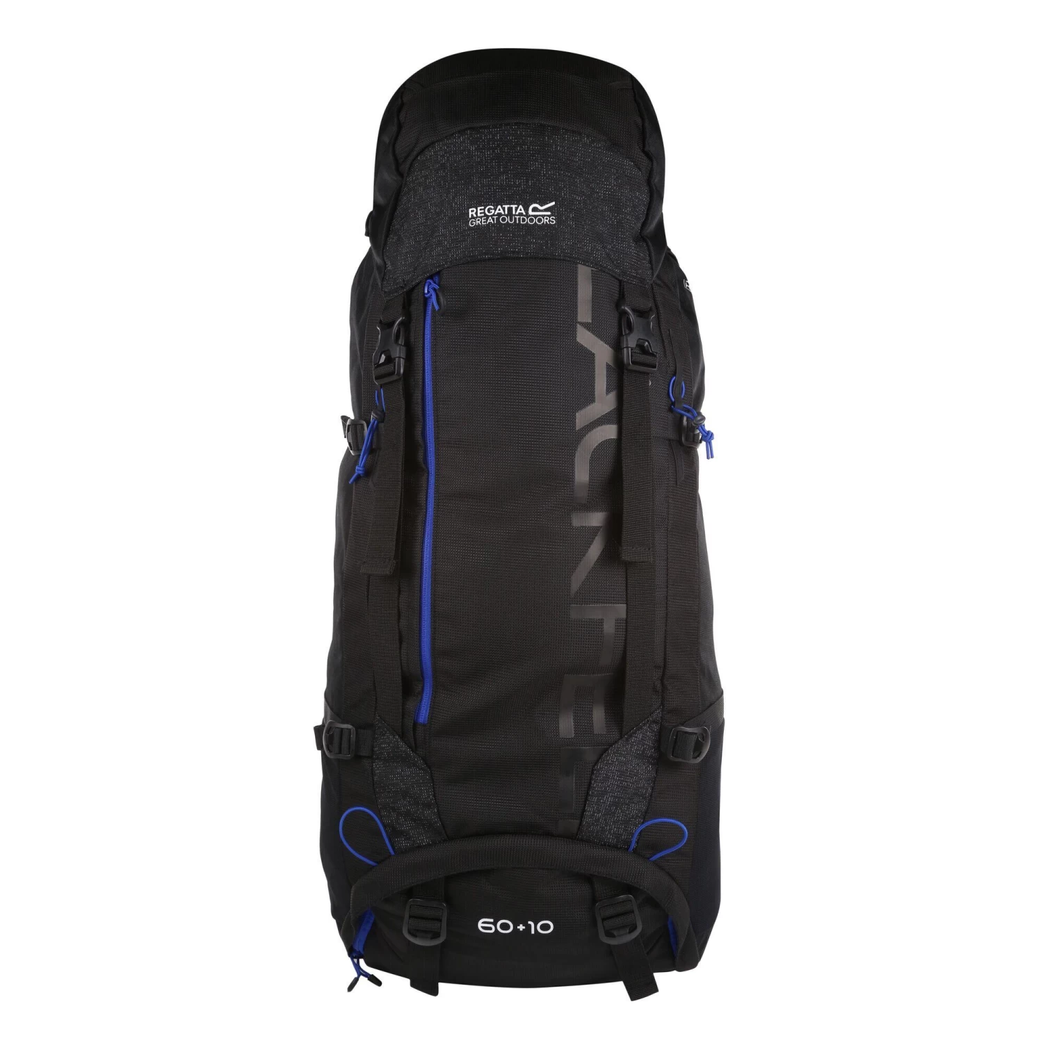 Our Blackfell expedition rucksack with up to 70-litre capacity and a hydration reservoir. Built for overnight hiking trips and backpacking. Made from tough-wearing ripstop fabric with a supportive steel and mesh suspension frame to comfortably distribute weight. The packs hugs the body with two air mesh shoulder straps, an adjustable chest harness and stabilising hip belt. Belongings are organised with water bottle side pockets, a secure zipped lid pocket, front bungee storage cord and convenient lower zipped compartment. Hydration is made easy with a quick-access drinking tube. The detachable rain cover provides reliable weather protection. With a reflective trim finish.