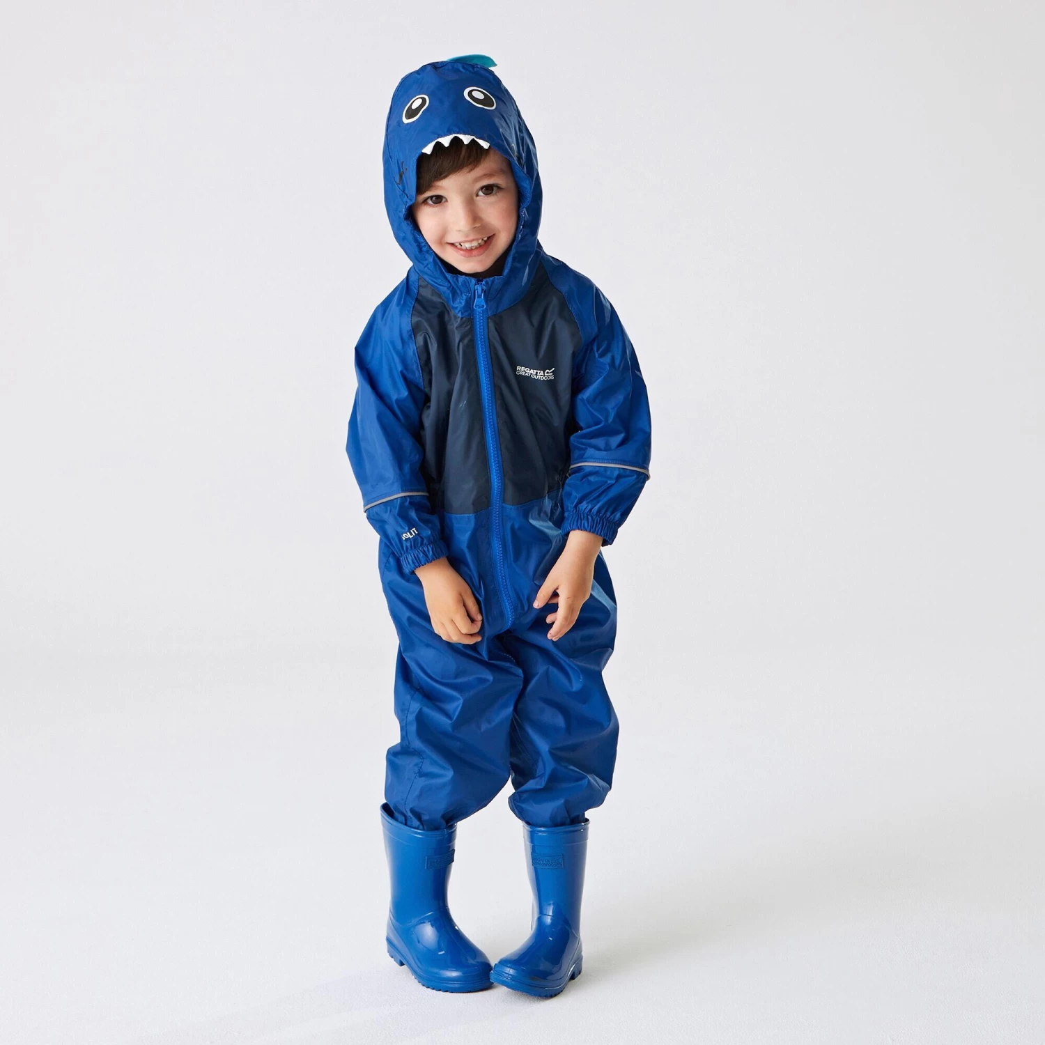 The kids’ Charco waterproof splash suit from Regatta. All-in-one with a super cute animal design. Made from breathable Isolite fabric with a durable water repellent finish and sealed seams. Whether it’s a wet weather day at nursery or feeding the ducks in the park, their favourite animal suit will make sure rain doesn’t stop the play.