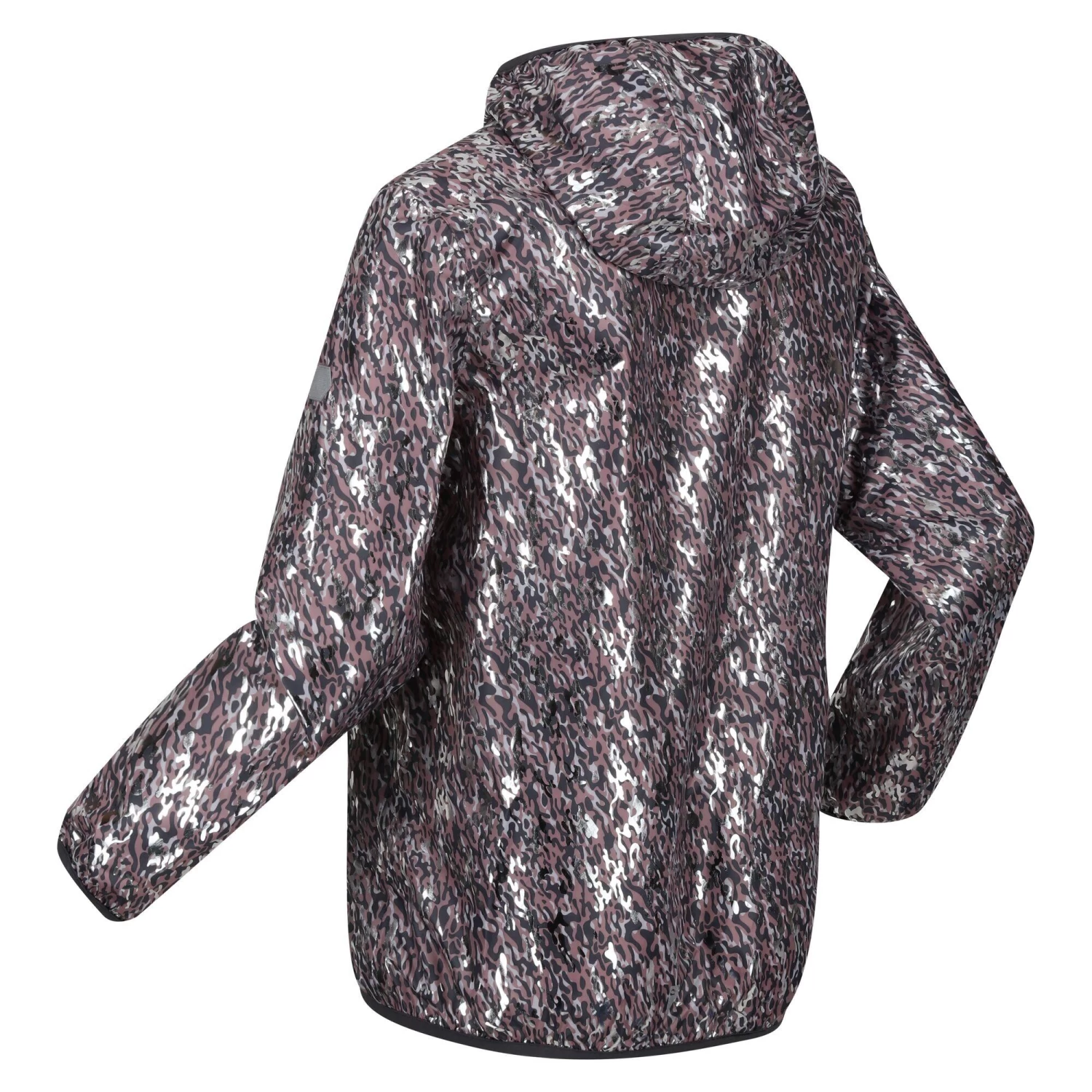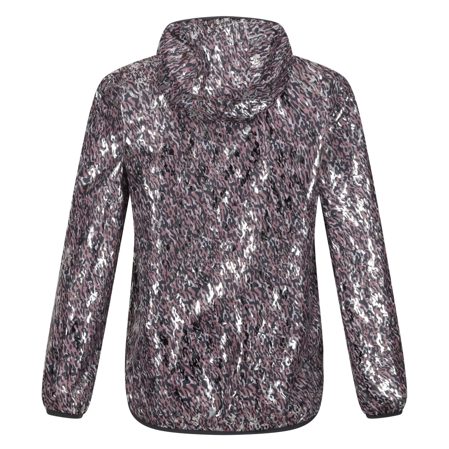 The kids’ Printed Lever waterproof jacket from Regatta. Super lightweight protection that packs down small. Made from waterproof and breathable Isolite fabric with a durable water repellent finish, to keep them dry inside and out. Pack-it down into the left-hand pocket and tuck it into their school bags, the car boot or hanging by the door in case of showers.