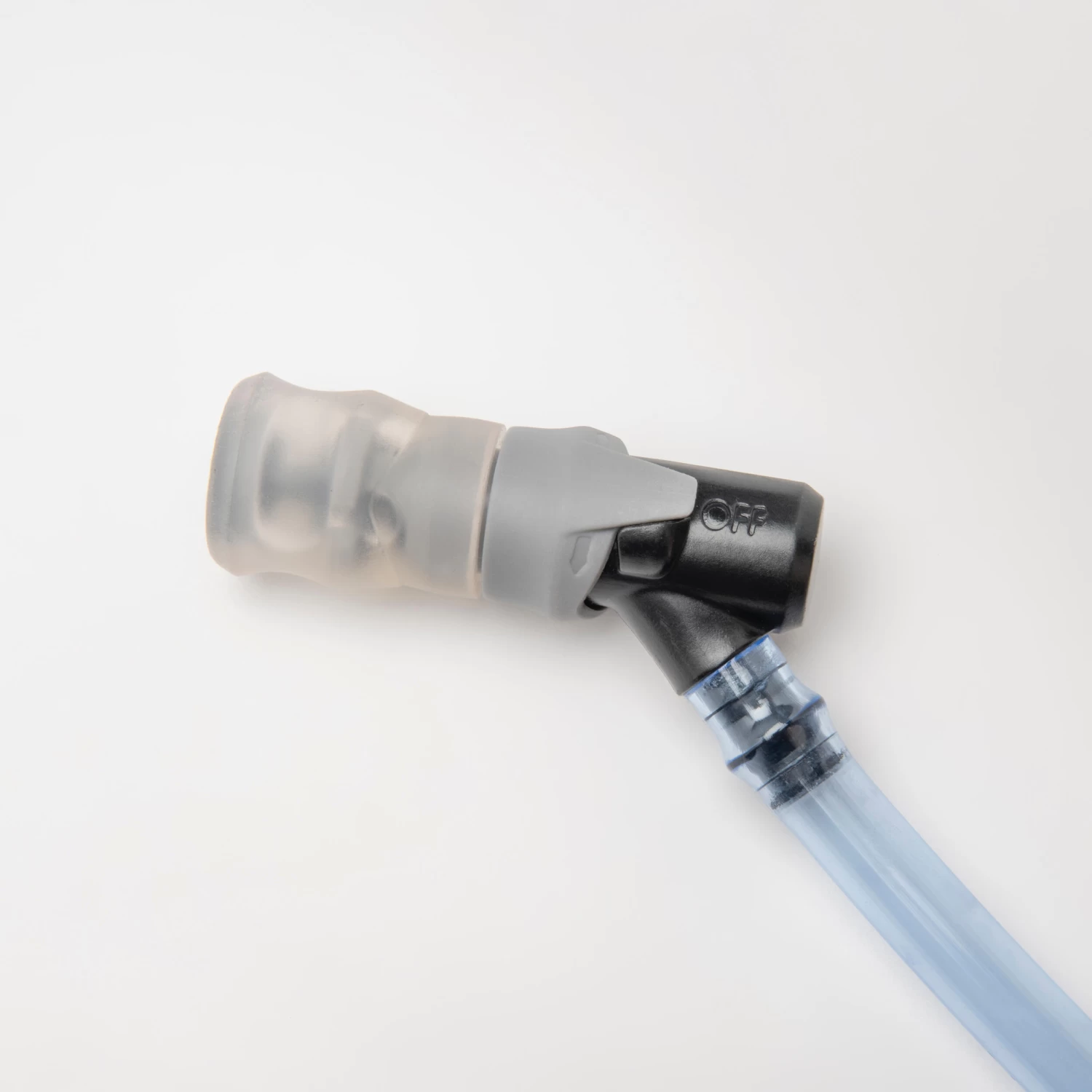 The bite valve has an on/off closure system to prevent leaks during transportation. When running, it does not leak, even when it is in the open position. In order to get a good flow rate when you drink, pinch the bite valve with your mouth and suck!